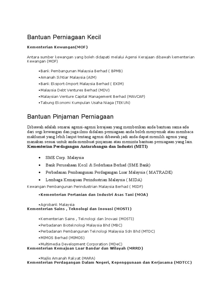 Syarat-Syarat Asas dan Khusus. Terdapat beberapa had pembiayaan bantuan yang boleh anda pohon mengikut jenis perniagaan anda. Pinjaman Perniagaan 2022.